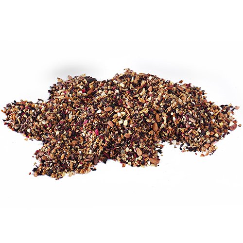 Hibiscus flower, Apple, Elderberries, Strawberries, Blackberry leaves, Orange peel