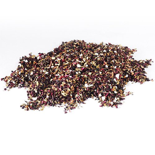 Hibiscus flower, Blackberry leaves, Rosehip, Licorice, Blackcurrant leaves, Apple, Blackberry, Strawberry
